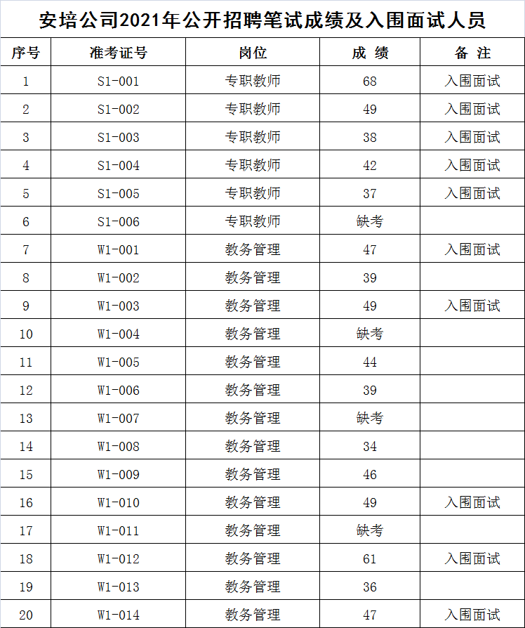 附件:《安培公司2021年公開招聘筆試成績及入圍面試人員》
