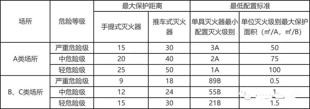 最后,根據(jù)下表選擇滅火器類型及規(guī)格(根據(jù)保護(hù)場所保護(hù)對象類型選擇適合的滅火器類型,如保護(hù)對象為檔案室則可考慮選擇潔凈氣體滅火器),本例子可選擇3kg的ABC干粉滅火器,每個配置點設(shè)置2具。
