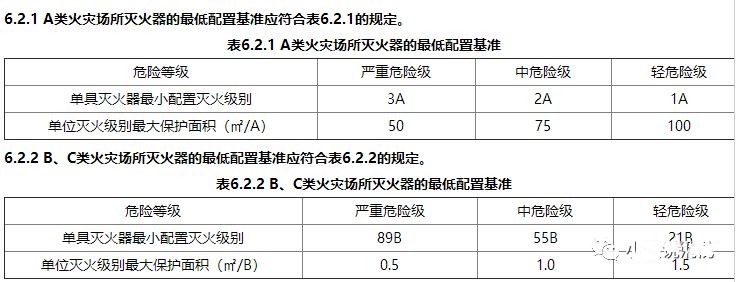 舉例: 計算單元面積為1000㎡,建筑內(nèi)僅設(shè)消火栓,保護(hù)場所為A類中危險級,那么Q=0.9×1000÷75=12(A),如果設(shè)置3個配置點(配合A類中危險級場所保護(hù)最大保護(hù)距離20m),那每個配置點滅火級別為12÷3=4(A),則可根據(jù)滅火級別確定每個配置點的滅火器數(shù)量,即2具2A滅火器。